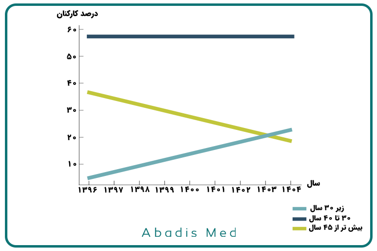 تحلیل روند سنی کارکنان از سال ۱۳۹۶ تا ۱۴۰۴
