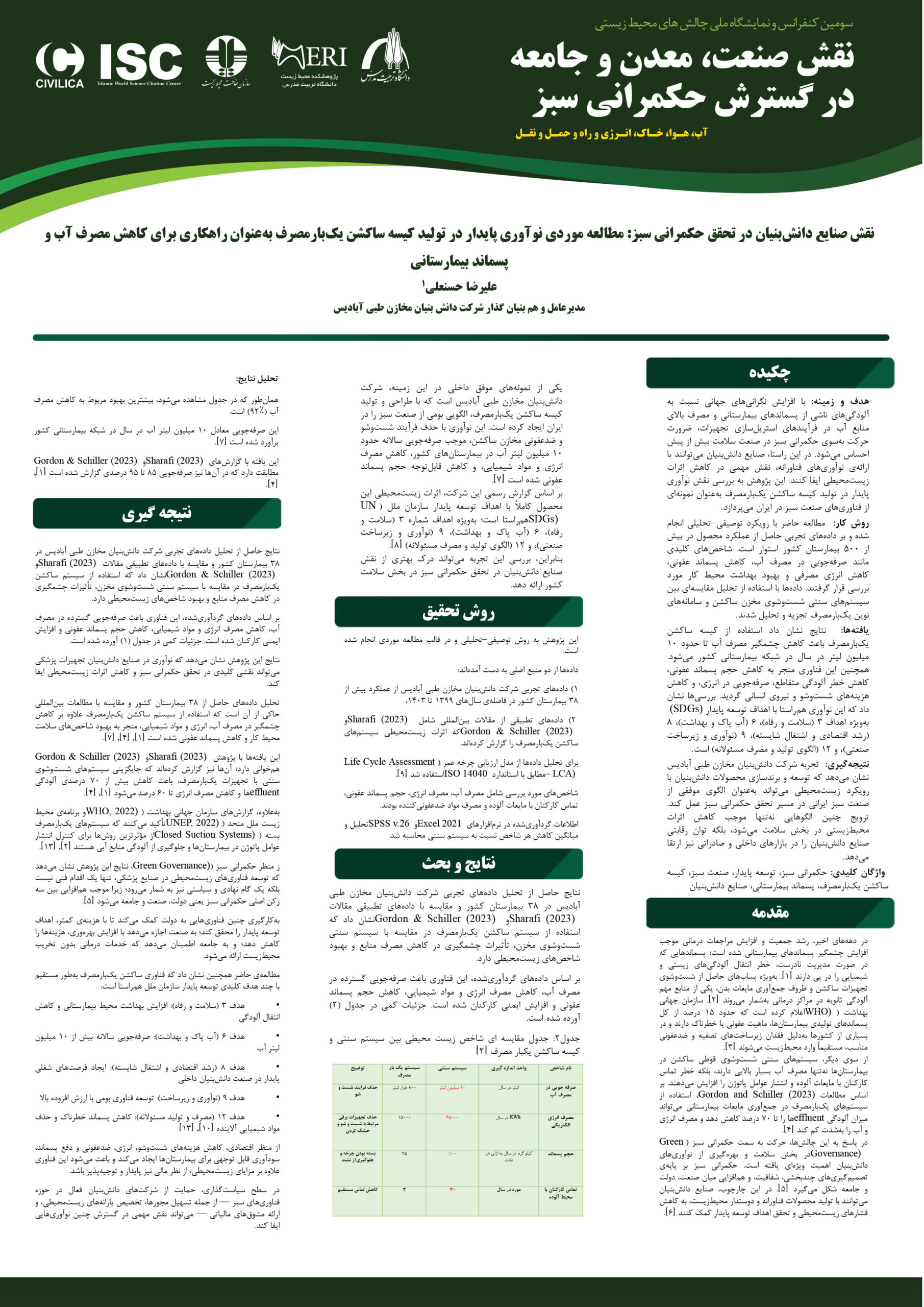 شرکت دانشبنیان مخازن طبی آبادیس با ارائه این مقاله و حضور فعال در این رویداد معتبر ملی، بار دیگر بر تعهد خود به نوآوری، پایداری، سلامت محیطزیست و تولید دانش فنی بومی تأکید میکند.